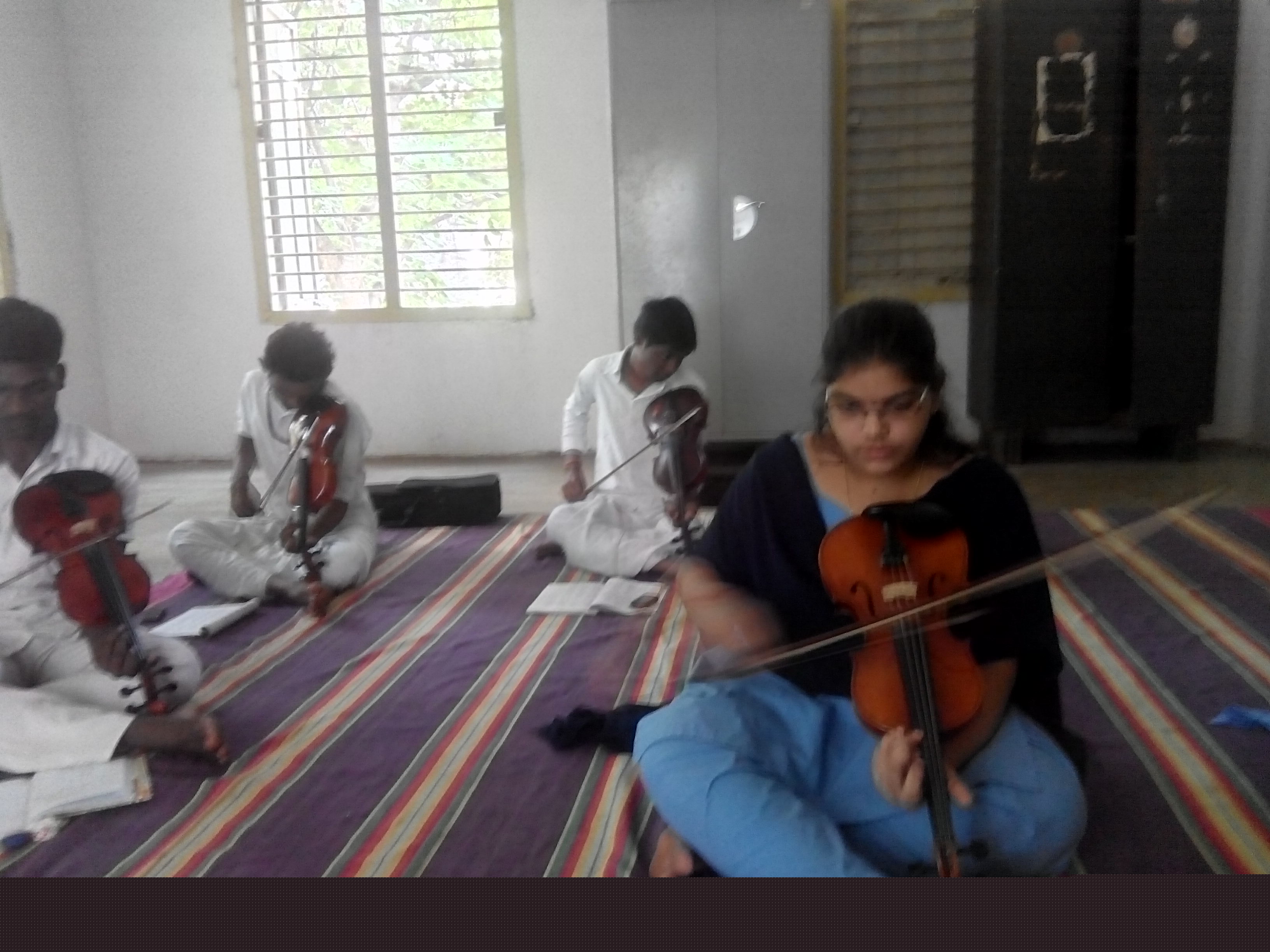 The Nadayogam Trust has funded and donated violins to students of S.V College of Music & Dance, Tirupati. These students come from rural villages and have no musical background nor can they afford to buy instruments. An amount of Rs. 2 lakhs has been put in fixed deposit to run this scheme.